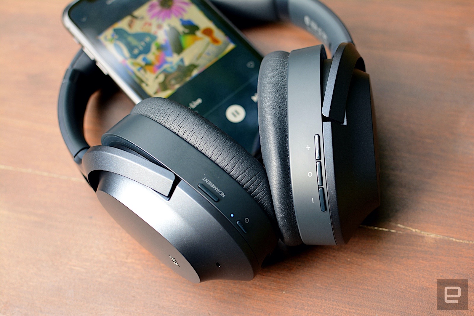 The overall design isn’t overly flashy either. These look like your typical noise-cancelling headphones. They’re mostly plastic with a soft, cushiony leatherette headband and earpads. Semicircle hinges fold flat onto the top of the earcups, similar to those from Sony and others. And the earcups rotate flat, so you can fold the Opus in toward the headband for relatively compact storage. There are physical onboard controls for volume, tracks and voice commands on the right side as well as an ANC and ambient-sound option beside the power button on the left. Thankfully, these all work well, though you have to hold the ANC button to use the ambient sound/Quick Attention mode. That feature automatically pauses whatever you’re listening to so you can briefly tune in to your surroundings.